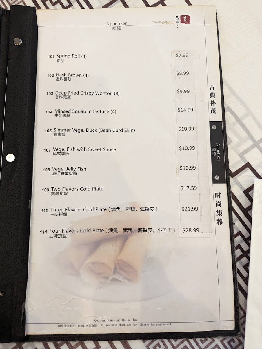 Crispy wheat flour skin filled with chicken, cabbage, and carrots, typically includes a blend of Chinese seasonings.